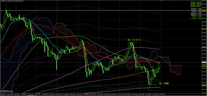 1時間足をみると、(A)はドンピシャ、(B)は十字架(+ドンピシャも)。