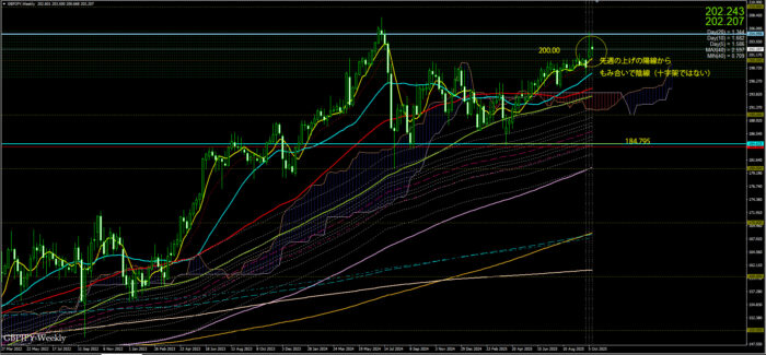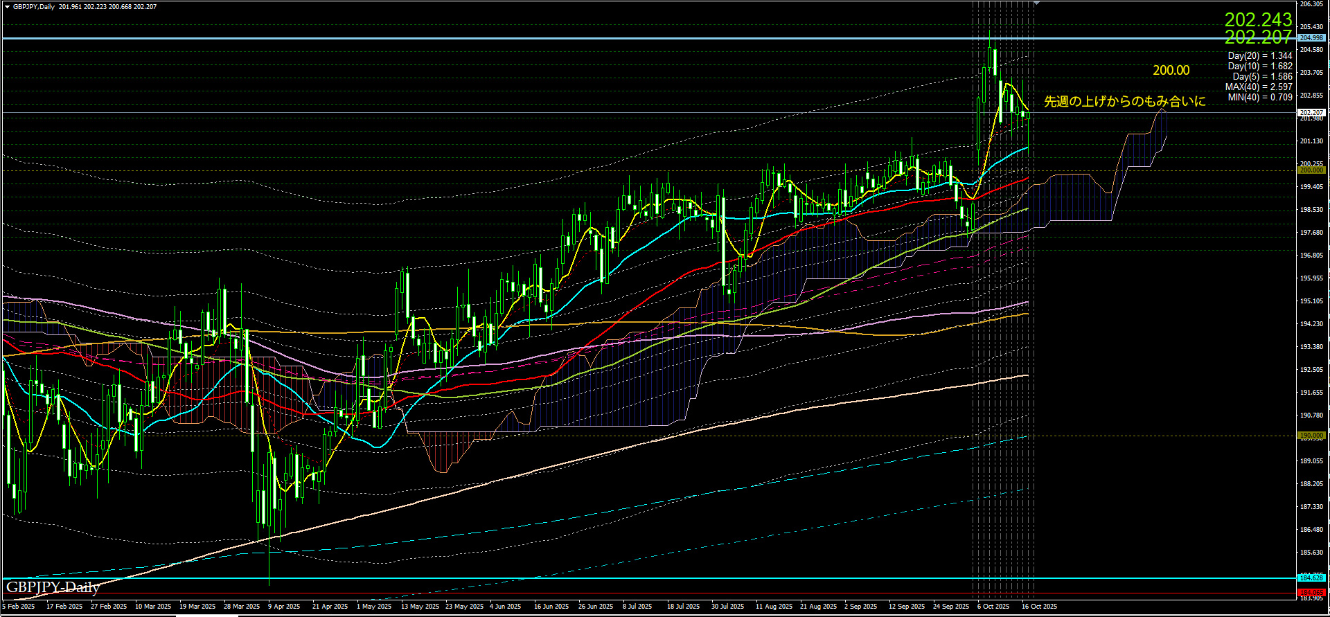 爆上げが高市総裁誕生での円安目線での上げだったが、その後政局が迷走しており、その影響で相場ももみ合い(ジリジリと下げ?)。