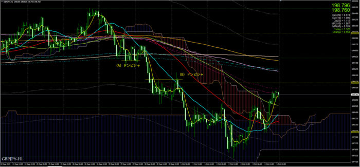 1時間足をみると(A)はドンピシャ、(B)は戻り売りのドンピシャ。