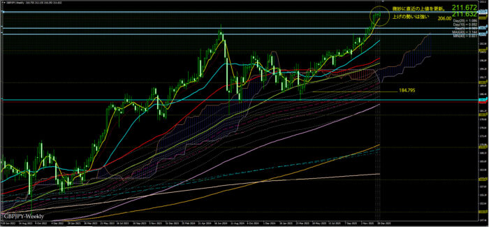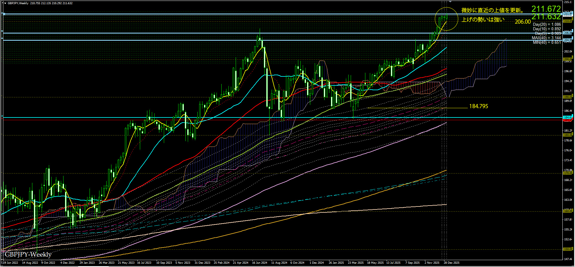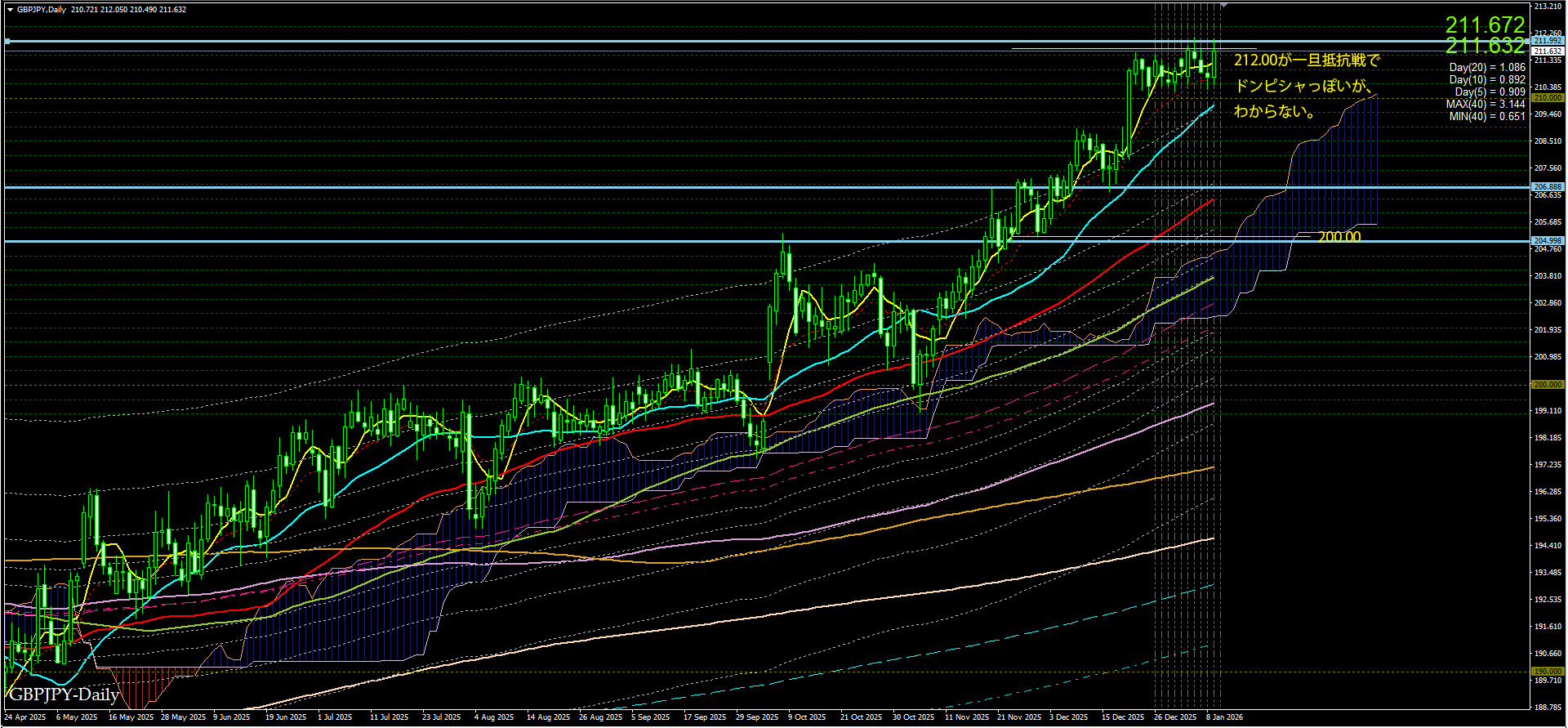 いよいよ2026年の相場がスタートした。もみ合いの週だった。上は212.00が抵抗線になっているのか?