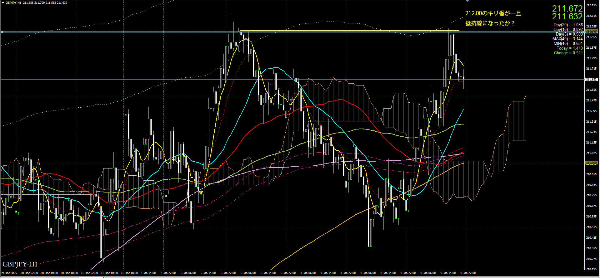 1時間足をみると、212.00のキリ番が一旦抵抗線になったか?