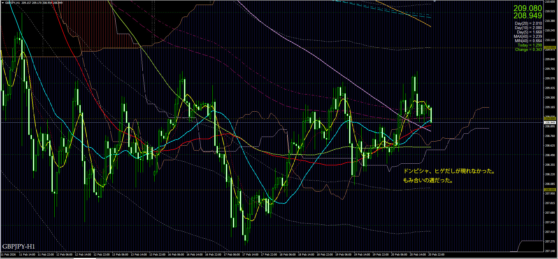 先週の大きな下げの後のもみ合いで方向がみえなかった。しかし日足ではドンピシャが出ており(A)、若干上方向への勢いがあったか?