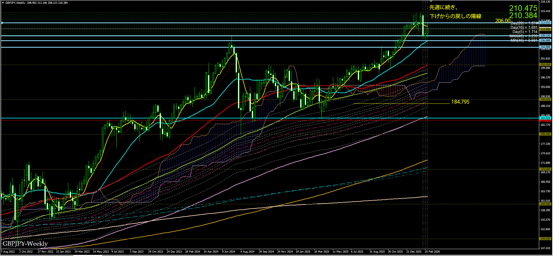 先々週のバク下げから、先週少しあげ、今週も引き続き上げていった。円安方向の動きはまだ続いているようだ。