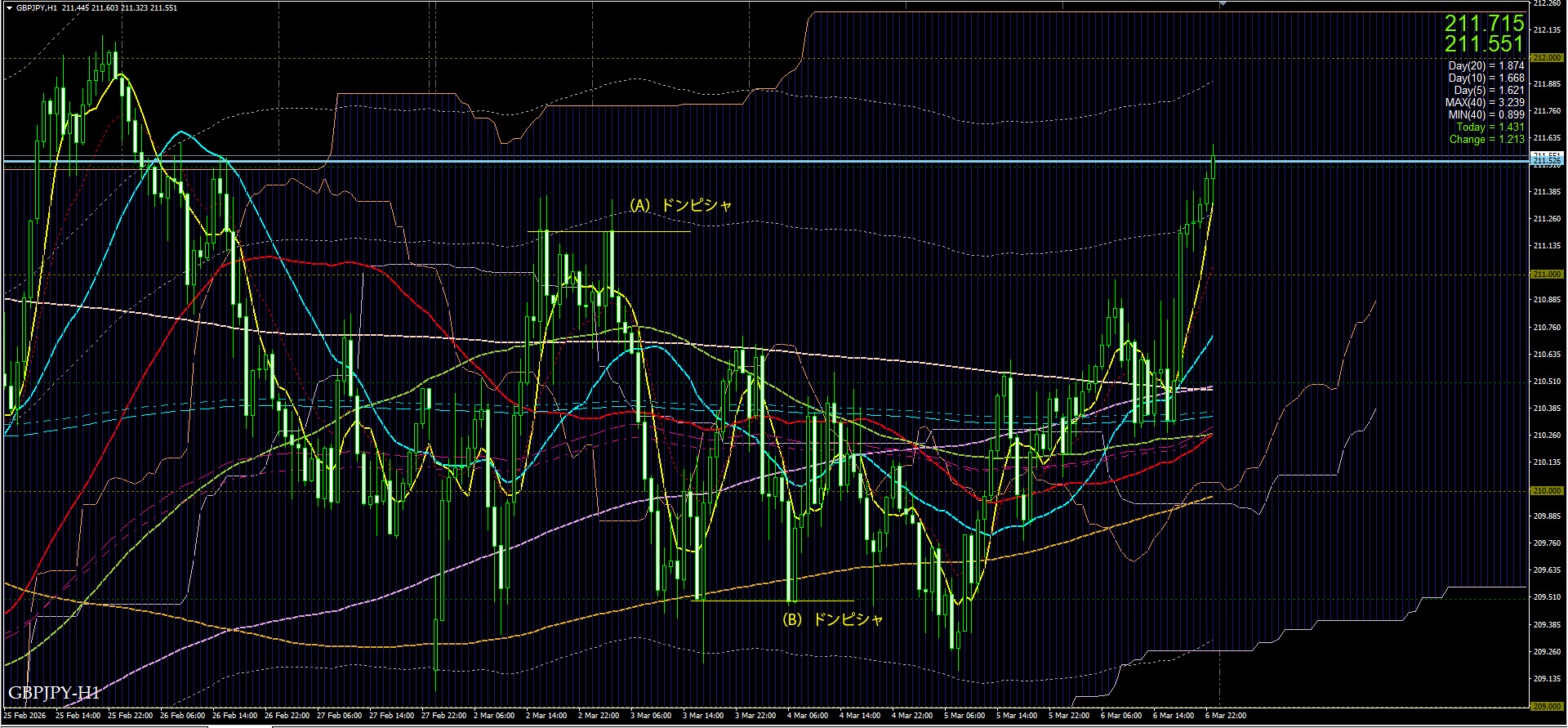 1時間足をみると、(A)はドンピシャ、(B)はドンピシャ。