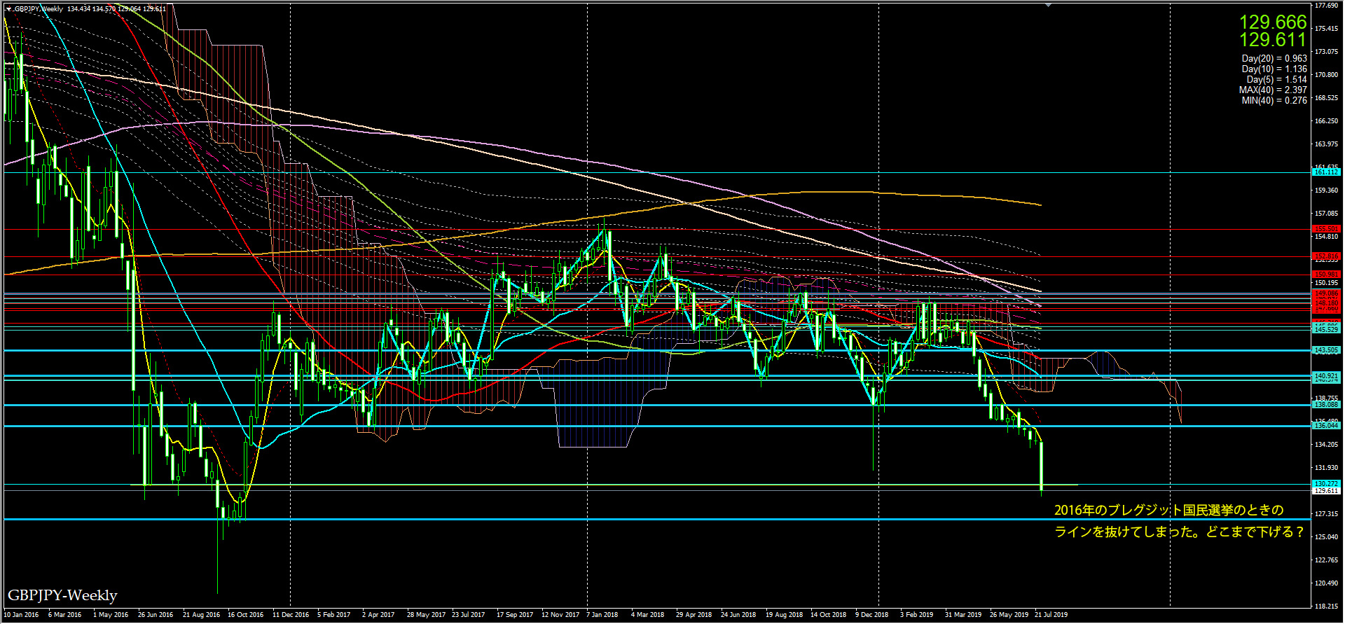 週足をみると、2016年のブレグジットの安値を抜けてしまった。